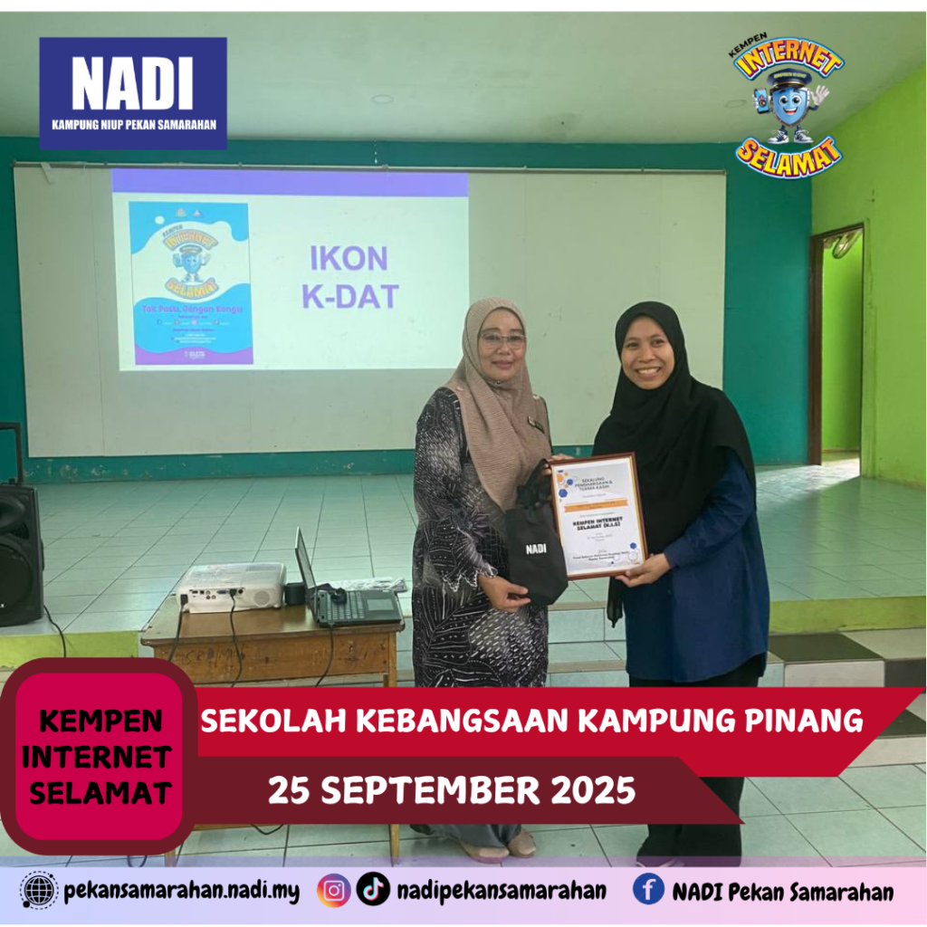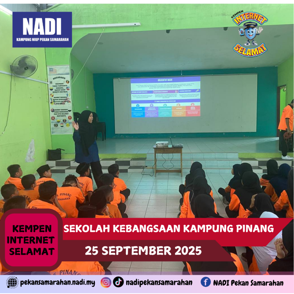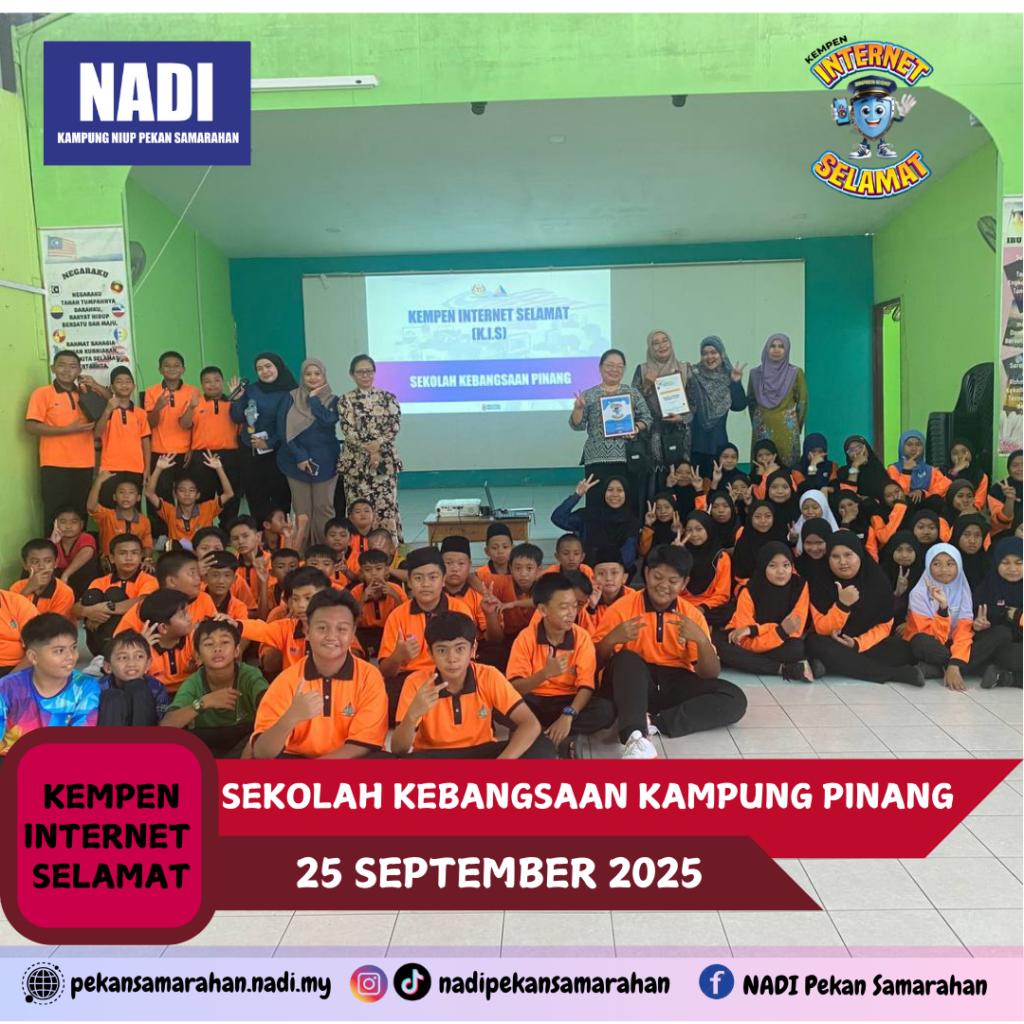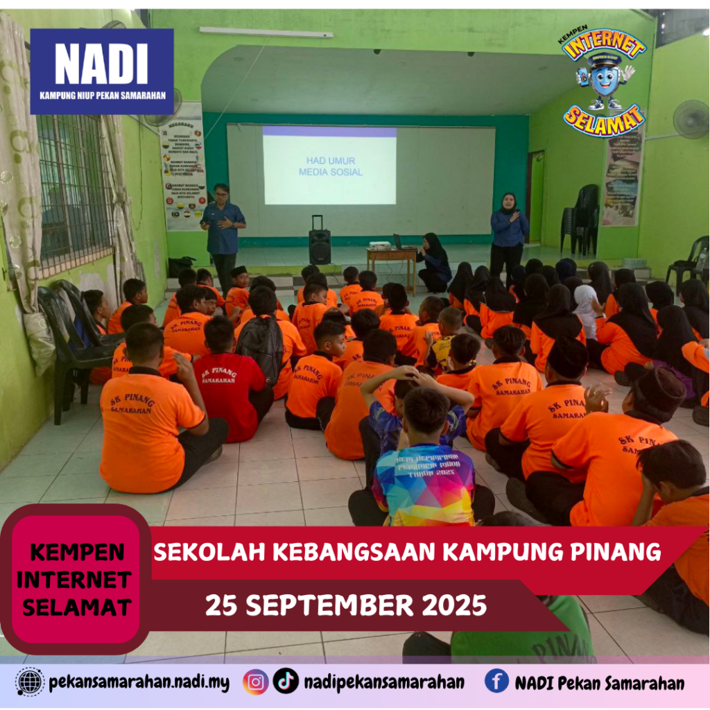 Pada 25 September 2025, jam 2.00 petang, NADI Kluster Samarahan dengan kerjasama beberapa NADI terlibat telah menjayakan Kempen Internet Selamat bersama 69 orang murid Tahap 2 (Tahun 4, 5 dan 6) di SK Pinang, Samarahan.